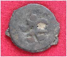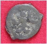 | Description / विवरण | The Shape of the Coin is Circular. Obverse A Standing figure of Kushana type king, with upwards curved right hand and outstretched left hand, wears boots and tunic. Reverse Probably a standing figure of MAO or Moon-God with upwards curved right hand and left hand is not visible, the crescent above the left shoulder. |