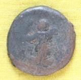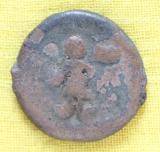 | Description / विवरण | The shape of the coin is circular. Obverse Kushana type king, standing with his right hand curved upwards and his left arm curved downwards. Reverse Probably the figure of MAO or Moon-God with his right arm extended and the crescent above the left shoulder. |