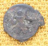 | Description / विवरण | The shape of the coin is circular. Obverse Kushana type king, standing with his right hand upwards and his left arm downwards. Reverse Probably the figure of MAO or Moon-God with his right arm upwards and the crescent above the left shoulder. |