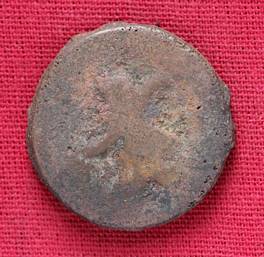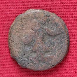 | Description / विवरण | The shape of the Coin is circular. Obverse -A Kushana type king standing with his right arm curved upwards and left arm curved downwards. Reverse -Probably, a standing figure of MAO or Moon-God with right arm curved upwards and the crescent above the left shoulder. The left arm is not visible. |