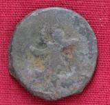 | Description / विवरण | The shape of the coin is circular. Obverse Kushana type king, standing with his right hand curved upwards and his left arm extended. Reverse Probably the figure MAO or Moon-God with his right arm curved upwards and the crescent above the left shoulder. |