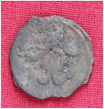 | Description / विवरण | The Shape of the Coin is Circular. Obverse Probably a standing figure of MAO or Moon-God with pointed right hand and left hand is not visible, the crescent above the left shoulder. Reverse Legend below the three hills or three conical objects. |