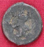 | Description / विवरण | The shape of the Coin is circular. Obverse -A Kushana type king standing with his right arm extended and left arm outstretched. Reverse -Probably, a standing figure of MAO or Moon-God with right arm curved upwards and the crescent above the left shoulder. The left arm is not visible |