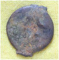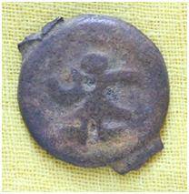 | Description / विवरण | The Shape of the Coin is Circular. Obverse A Standing figure of Kushana type king, with right hand curved upwards and left hand slightly curved downwards. Wears boot tunic. Reverse Probably a standing figure of MAO or Moon-God, a Crescent above the left shoulder, upper portion of Moon-God is not visible. |