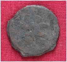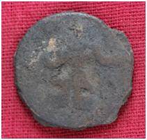 | Description / विवरण | The Shape of the Coin is Circular. Obverse A Standing figure of Kushana type king, with upwards curved right hand and extended left hand, wears boots and tunic. Reverse Probably a standing figure of MAO or Moon-God with upwards curved right hand and left hand is not visible, the crescent above the left shoulder, wears boots tunic. |