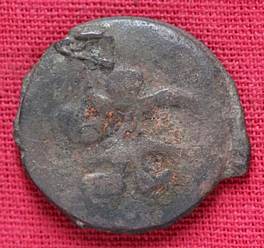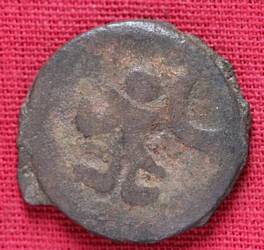 | Description / विवरण | The shape of the Coin is circular. Obverse -A Kushana type king standing with his right arm curved upwards and left arm curved downwards. Reverse -Probably, a standing figure of MAO or Moon-God with right arm curved upwards and the crescent above the left shoulder. The left arm is not visible |