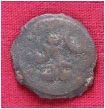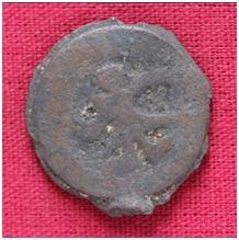 | Description / विवरण | The Shape of the Coin is Circular. Obverse A Standing figure of Kushana type king, with curved upwards right hand and outstretched left hand, wears boots and tunic. Reverse Probably a standing figure of MAO or Moon-God with upwards curved right hand and left hand is not visible, the crescent above the left shoulder. |