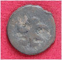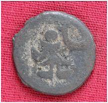 | Description / विवरण | The Shape of the Coin is Circular. Obverse A Standing figure of Kushana type king, with upwards curved right hand and downwards curved left hand, wears boots and tunic. Reverse Probably a standing figure of MAO or Moon-God with upwards curved right hand and left hand is not visible, the crescent above the left shoulder, wears boots and tunic. |