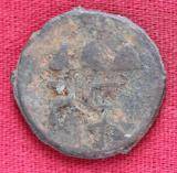 | Description / विवरण | The shape of the coin is circular. Obverse probably the figure of MAO or Moon God with right arm curved upwards and the crescent above the left shoulder. Reverse Three hills or cone like objects placed in a straight line and below them some letters are inscribed. |