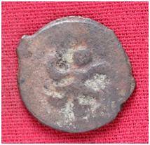 | Description / विवरण | The Shape of the Coin is Circular. Obverse A Standing figure of Kushana type king, with uplifted left hand and right hand curved upwards, wears boots and tunic. Reverse Probably a standing figure of MAO or Moon-God with upwards curved left hand and right hand is not visible, the crescent above the left shoulder, wears tunic and boots. |