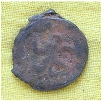 | Description / विवरण | The shape of the coin is circular. Obverse-Kushana type king standing with his right hand upwards and left hand down wards. Reverse-- probably the figure of MAO or Moon God- with right arm curved up wards and the crescent above the left shoulder. |