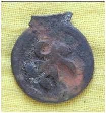 | Description / विवरण | The shape of the coin is circular. Obverse-Kushana type king standing and pointing his right hands up wards and left arm extended Reverse-- probably the figure of MAO or Moon God- with right arm curved up wards and the crescent above the left shoulder. |