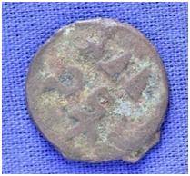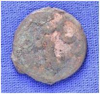 | Description / विवरण | The shape of the coin is circular. Obverse-probably the figure of MAO or moon god-with right arm curved up wards and the crescent above the left shoulder Reverse- three hills or cone like objects placed in a straight line and below it, there is an inscription. |