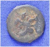 | Description / विवरण | The shape of the coin is circular. Obverse- Kushana type king standing with his right hand upwards and left hand down wards Reverse- probably the figure of MAO or Moon God- with right arm curved up wards and the crescent above the left shoulder. |