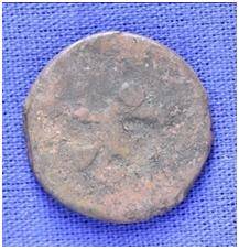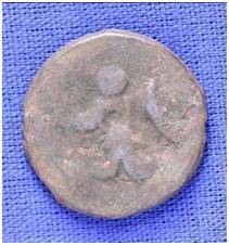 | Description / विवरण | The shape of the coin is circular. Obverse- Kushana type king standing with his right hand upwards and left arm extended Reverse- probably the figure of MAO or Moon God- with right arm curved up wards and the crescent above the left shoulder. |