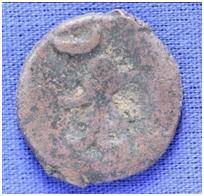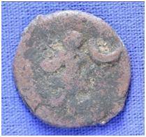 | Description / विवरण | The shape of the coin is circular. Obverse- Kushana type king standing with his right hand upwards and left arm extended.A crescent is found to the right top of the figure. Reverse-- probably the figure of MAO or Moon God- with right arm curved up wards and the crescent above the left shoulder. |