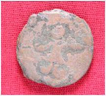 | Description / विवरण | The shape of the coin is circular. Obverse- Kushana type king standing with his right hand upwards and left arm extended. Reverse-- probably the figure of MAO or Moon God- with right arm curved up wards and the crescent above the left shoulder. |