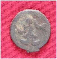 | Description / विवरण | The shape of the coin is circular. Obverse- Kushana type king standing with his right hand upwards and left arm extended. Reverse-- probably the figure of MAO or Moon God- with right arm curved up wards and the crescent above the left shoulder. |