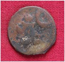 | Description / विवरण | The shape of the coin is circular. Obverse- Kushana type king standing with his right hand upwards and left arm extended. Reverse-- probably the figure of MAO or Moon God- with right arm curved up wards and the crescent above the left shoulder. |