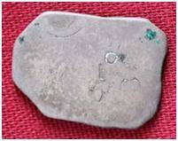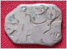 | Description / विवरण | The coin is an imperial type of Punch- marked Coin. The shape of the coin is irregular. Obverse Sun, Six armed wheel, an animal stands above the two arched hill. Reverse A dot within a circle and other symbols are defaced. |