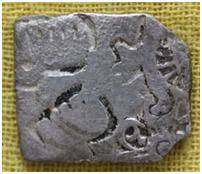 | Description / विवरण | The coin is an imperial type of Punch- marked Coin. The shape of the coin is hexagonal. Obverse Sun, bull, dog, animal, Six armed wheel. Reverse Tree, two dots within a circle, crescent and other symbols are indistinct. |
