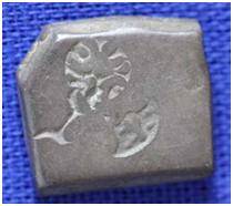 | Description / विवरण | The shape of the coin is irregular. Obverse Sun, Six armed wheel, tree, fish and other symbol is indistinct. Reverse Indistinct symbol. |