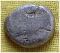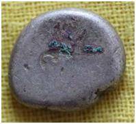 | Description / विवरण | The shape of the coin is irregular. Obverse Sun and other symbols are defaced. Reverse Two taurines. |