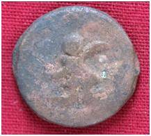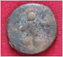 | Description / विवरण | The shape of the coin is circular. Obverse-Kushana type king, standing with his right hand curved up wards and left arm extended. Reverse- Probably the figure of MAO or Moon-God with his right arm curved upwards and the crescent above the left shoulder. |