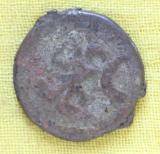 | Description / विवरण | The shape of the coin is circular. Obverse Kushana type king, standing with his right hand e xtended and his left arm not visible. Reverse Probably the figure of MAO or Moon-God with his right arm e xtended and the crescent above the left shoulder. |