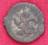 | Description / विवरण | The shape of the coin is circular. Obverse Kushana type king, standing with his right hand curved upwards and his left arm e xtended upwards. Reverse Probably the figure of MAO or Moon-God with his right arm curved upwards and the crescent above the left shoulder. |