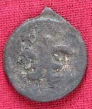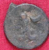 | Description / विवरण | The shape of the coin is circular. Obverse Kushana type king, standing with his right hand curved upwards and his left arm e xtended upwards. Reverse Probably the figure of MAO or Moon-God with his right arm is not visible and the crescent above the left shoulder. |