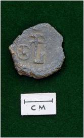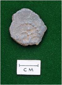 | Description / विवरण | Obv. - is not clearly visible except dots undulating curved line. Rev. - Chakra and Brahmi script near it, dots undulating line. |