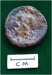 | Description / विवरण | On one side is visible a human in standing posture. A belt like thing is tied on abdomen. The other side is not clearly visible. |