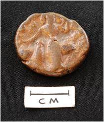 | Description / विवरण | Obv. - Depiction of a standing king. Hands not clearly visible . Rev. - Deity. |