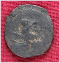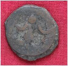 | Description / विवरण | The Shape of the Coin is Circular. Obverse A Standing figure of Kushana type king, with upwards cureved right hand and outstretched left hand, wears boots and tunic. Reverse Probably a standing figure of MAO or Moon-God with upwards curved right hand and left hand is not visible, the crescent above the left shoulder, wears boots tunic. |