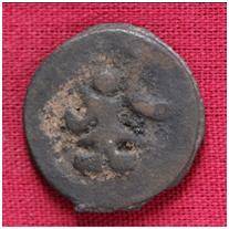 | Description / विवरण | The shape of the coin is circular. Obverse- Kushana type king standing with his right hand curved up wards and left hand curved down wards. Reverse-- probably the figure of MAO or Moon God- with right arm curved up wards and the crescent above the left shoulder. |