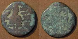 | Description / विवरण | Descrpn./Obv Stylised seated Goddess facing (Details and legend rubbed off/ worn out). Descrpn./Rev Stylised standing king design (Details and legend rubbed off/ worn out) |
