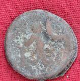 | Description / विवरण | The shape of the coin is circular. Obverse The figure of MAO or Moon God standing with his right arm curved upwards and the crescent above the left shoulder. Reverse Three hills or cone like objects placed on straight line and below them some letters. |
