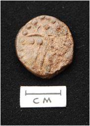 | Description / विवरण | Obv. - Depiction of a human figure dots on upper part. Rev. - Script depiction. |