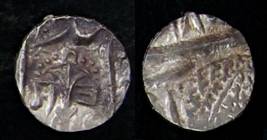 | Description / विवरण | Descrpn./Obv In the centre, a chhatra with Sa and Ta in Gurumukhi script on the left and right of its shaft; traces of the Persian legend seen on the obverse of the bigger Nanakshahi coins of Amritsar mint are also seen. Descrpn./Rev Big peepal leaf and traces of the Persian legend seen on the reverse of the bigger Nanakshahi coins of Amiritsar mint - Shri Amritsarjiv zarb [VS Year] Takht maimanat julus manus Akal Bakht. Especially traces of alif of Akal and te of Takht and maimanat are seen |