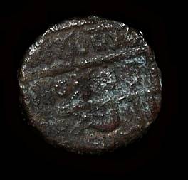 | Description / विवरण | This is a circular copper coin issued during the time of Vijayanagara dynasty.Obverse Faint relief of Hanuman standing in alidha posture and head turned to right, is decorated with a crown. Reverse Three line inscription in kannada character of 16th century A.D. reading Sri ma ha Ra Rangaraya ... between intervening rules.Undulated surface is noteworthy and the legend in the second and third line have eroded considerably. |