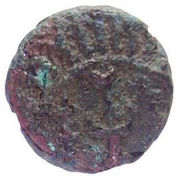 | Description / विवरण | Lot No. 13 1335F, 808 Circular copper coin with legend on obverse and lamp stands on the reverse. Obverse Ornamental lion facing right with looped tail, mouth open, within a circle bordered by a dotted circle. Reverse A double ya symbol with crescent, flanked by a lamp stand on either side, inside bordered by a rayed circle. |