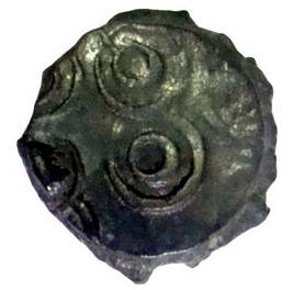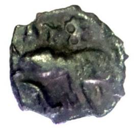 | Description / विवरण | Round shaped copper coin of the Samagopa having elephant on the obverse and Ujjain symbol on the reverse. Obverse A walking elephant facing left trunk hanging down with a curved tusk, tail up lifted partly visible. A Srivatsa symbol is visible in between the legend above the animal. Reverse A slightly worn out coin, two Ujjain symbols having double circles in each orb are partly visible. |