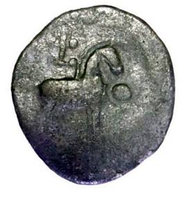 | Description / विवरण | Lot No. 19 1982 Round shaped lead coin having standing horse on the obverse. Obverse A standing horse facing right. Below the mouth a big dot is visible, above the animal Srivasta symbol is seen, tail is hanging down. Reverse A heavily worn out coin with faintly visible tree with branches . |