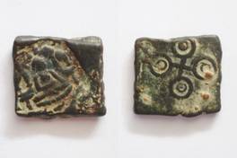 | Description / विवरण | On the obverse Laxmi seating in padmasana on lotus, two elephants standing on both the side is depicted. On the reverse Ujjayani symbol is depicted. |