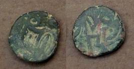 | Description / विवरण | Descrpn./Obv Recumbent bull facing left, wearing jhula (saddle cloth). Above, legend in Sarada script Sri Samantadeva (in cursive letters, mostly truncated and seen partially or off the flan). Descrpn./Rev Rider with lance on caparisoned horse facing right. |