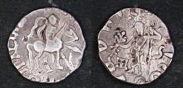 | Description / विवरण | Descrpn./Obv Diademed king on horseback to r., wearing armour and holding spear; Greek legend, Basileos Megalou / Spalirisou. Descrpn./Rev Zeus radiate, standing facing, holding long scepter in left hand and thunderbolt in outstretched hand; Kharoshthi legend, Maharajasa mahatakasa /Ayasa |