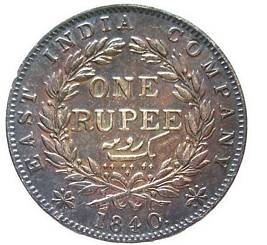 | Description / विवरण | Lot No. 2 1996 Circular silver coin with legends on both sides. Obverse Queen facing left. Reverse 1 rupee, ek rupiya in Persian language, within a foliage circle, East India company 1840, within a dotted border. |