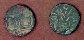| Description / विवरण | Descrpn./Obv Recumbent bull facing left, wearing jhula (saddle cloth). Above, legend in Sarada script Sri Samantadeva (in cursive letters, mostly truncated and seen partially or off the flan). Descrpn./Rev Rider with lance on caparisoned horse facing right. |
