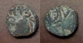 | Description / विवरण | Descrpn./Obv Recumbent bull facing left, wearing jhula (saddle cloth). Above, legend in Sarada script Sri Samantadeva (in cursive letters, mostly truncated and seen partially or off the flan). Descrpn./Rev Rider with lance on caparisoned horse facing right. |